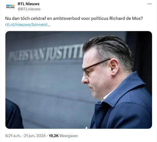 Vandaag is de dag waarop realistisch Nederland eindelijk gerechtigheid verwacht voor Richard de Mos. De Haagse politicus, die bijna vijf jaar geleden werd geconfronteerd met een inval door de politie, staat opnieuw terecht. Het gerechtshof doet vandaag uitspraak, en terwijl het merendeel van Nederland vrijspraak verwacht, blijft RTL Nieuws met hun suggestieve kop hopen op een andere uitkomst: "Nu dan tóch celstraf en ambtsverbod voor politicus Richard de Mos?" Het is ronduit beschamend hoe de media hun vooringenomenheid laten doorschemeren. In plaats van een neutrale benadering, kiest RTL Nieuws ervoor om sensatie te zoeken. Een kop als “Nu eindelijk vrijspraak voor Richard de Mos” had net zo goed gekund, maar dat past natuurlijk niet in hun narratief.