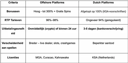 De groeiende voorkeur voor offshore casino's onder Nederlandse spelers kan worden toegeschreven aan hun hogere bonussen, betere RTP-tarieven en snellere uitbetalingssystemen. Deze casino's bieden ook een bredere selectie spellen en flexibelere betalingsopties, vooral met cryptocurrencies.