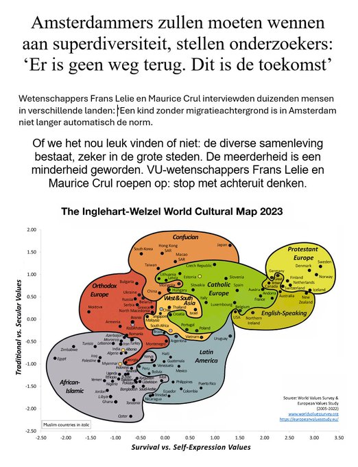 Jan van de Beek, die wél met feiten werkt in plaats van wensdenken, slaat keihard terug op X: "Dit is typisch hoe de wetenschappelijk goegemeente denkt: De Nederlandse meerderheid ─ bij ongewijzigd beleid binnenkort ook een minderheid ─ moet maar wennen aan ‘superdiversiteit’. Samengevat: ‘Diversiteit Moet,