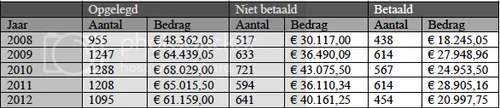 Zo laat het Haagse college van burgemeester en wethouders weten dat het werkelijk om behoorlijk hoge bedragen gaat. Erger is dat de niet-betaalde boetes de afgelopen jaren niet zijn afgenomen maar toegenomen. Zie deze handige tabel die het college heeft opgenomen in een brief n.a.v. vragen van Richard de Mos (Groep De Mos). Voor alle antwoorden op zijn vragen, zie de tweede bijlage onder dit artikel.