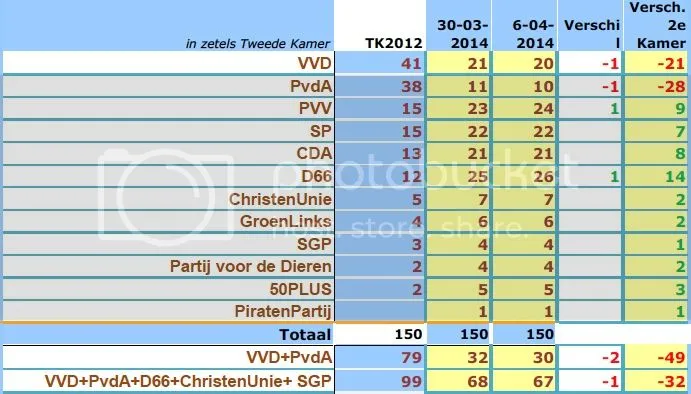 Uit de meest recente peiling van Maurice de Hond blijkt weer eens dat de kiezer de 'uitruil-strategie' van de coalitie helemaal niets vindt. Daarom verliezen beide partijen een zetel, waardoor de PvdA nog maar op tien (10!) zetels staat.