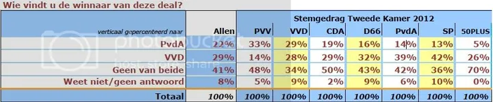 Zie daar de algemene conclusie: geen van beide heeft iets 'gewonnen.' Zowel PvdA als VVD zijn erop achteruit gegaan, aldus uh, iedereen. En Samsom en Zijlstra maar net doen alsof het een geweldige deal was waarbij er iets moois aan iedereen is gegeven.