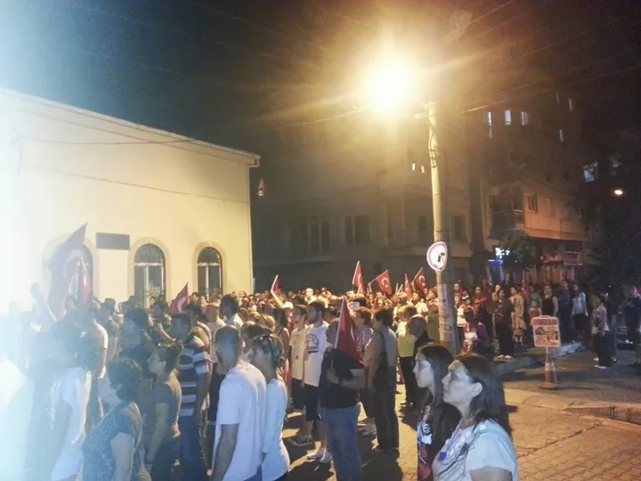 (Karsiya, Izmir. 11 juni, 2013. Er werd bijna niet gelachen, en al helemaal niet gezongen. Ook geen uitbundigheid ten opzichte van auto's die de demonstranten passeerden. Copyright: Michael van der Galien / De Dagelijkse Standaard)
