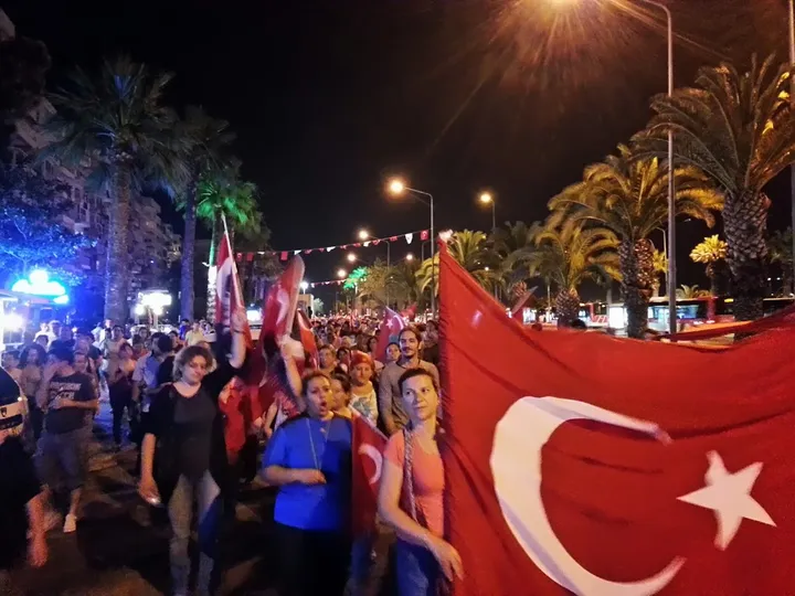 (Karsiyaka, Izmir. 11 juni, 2013. Copyright: Michael van der Galien / De Dagelijkse Standaard. Ook hier: er wordt nog maar weinig gelachen. De sfeer is grimmig.)