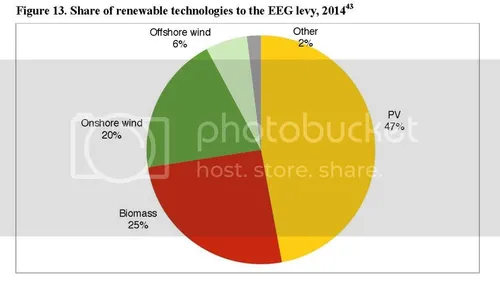 Duitsland zag in de eerste vijf maanden van 2014 een toename van de zonnepanelen met 34%, met nu een totaal piekvermogen van meer dan 23 Gwu, 50% van de Duitse energiebehoefte. Maar het normale rendement zal op op ongeveer 25% daarvan liggen want bij nacht en wolken leveren ze weinig of niets.