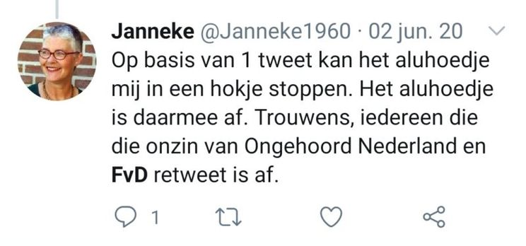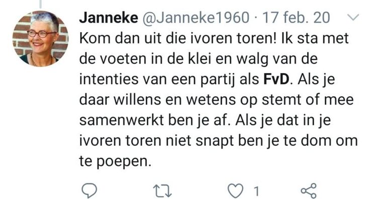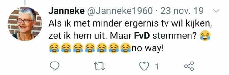 aldus stemmenteller Janneke. Dat is al erg genoeg, maar ze was nog lang niet klaar met haar FVD haat. Oh nee.