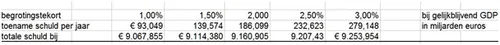 tabel 2   begrotingstekort oplopend per jaar bij percentages tussen 1 en 3.