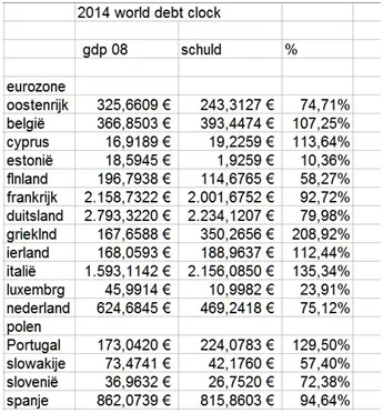 tabel 1  Bruto Binnenlands Product, staatsschuld en percentage daarvan tov het BDP: