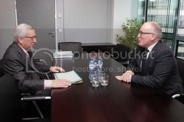 Timmermans op sollicitatie bij Juncker, vanmiddag, met alleen water op tafel:
