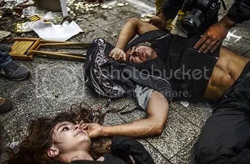 Zoals het echte democraten betaamt eindigde het niet bij het fysiek verwonden van betogers. Er zijn namelijk ook nog eens 120 demonstranten opgepakt omdat ze hun rechten zowaar wilden gebruiken (te weten het recht om te protesteren). In normale democratieën kan dat recht je niet worden ontnomen, maar in Turkije sinds kort wel. Met dank aan Erdogan en zijn Europese vrienden die hem aan de macht hebben geholpen en het leger tegelijkertijd helemaal hebben ontmanteld zodat niets wannabe dictators in de weg staat om de alleenheerschappij te grijpen.