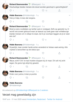 De situatie is in zo'n rap tempo verslechterd, dat je eigenlijk niet meer met een schoon geweten echt voor één kant kunt kiezen. Behalve als je , dan wel:En hier deel twee: U leest het, "verzet mag gewelddadig zijn"! En dat klopt, maar dan wel een specifiek soort geweld. Verzet tegen (echte) nazi's bijvoorbeeld. Helaas hebben we het hier allang niet meer over zulk gericht geweld, bedoeld om 'de onderdrukker' tegen te houden. Dit is gewoon regelrecht opportunisme wat zich hier voltrekt!