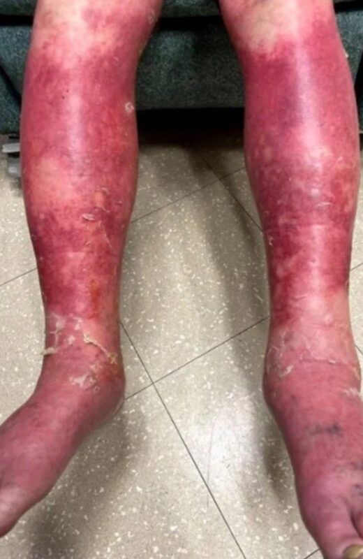 Op het allerergste moment van de uitslag was hij totaal onherkenbaar. Zijn huid was donkerrood, de huid viel er vanaf, en alles was opgezwollen. "Het stak, brandde, en jeukte," zegt de patiënt als ook geciteerd door de : "Elke keer dat ik mijn armen of benen boog, bijvoorbeeld de binnenkant van mijn knie, deed het enorm veel pijn waar de huid opgezwollen was.