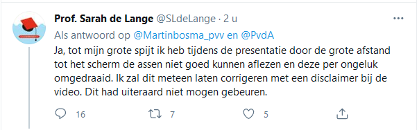 Professor aan de Universiteit van Amsterdam (UvA) Sarah de Lange valt volledig door de mand. In een videopresentatie stelt zij dat PVV-kiezers PvdA-mensen haten, maar zij las haar eigen grafiek verkeerd. Het is juist andersom, zo erkent zij zelf. Bosma vraagt zich af of zij wel een echte wetenschapper is na zo'n spectaculaire fout. Eerder al werd er al op gewezen dat van de UvA-hoogleraar Sarah de Lange volkomen tijdens een presentatie over extreem-rechtse krachten PVV-Kamerlid