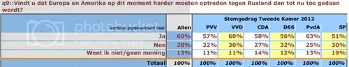 op bepaalde figuren na, over het algemeen namelijk voor een vrij hard buitenlands beleid, maar toch valt het op omdat veel diehard PVV'ers op het Internet juist allerlei samenzweringstheorieën lijken aan te hangen, en bijna automatisch partij hebben gekozen voor Poetin. Blijkbaar zijn die lieden dus niet alleen zwaar in de minderheid wat het algemene kiesvolk betreft, maar ook in hun eigen partij.