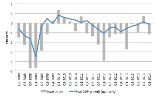Ook als we kijken naar de investeringsbereidheid van het Italiaanse bedrijfsleven slaat de schrik je om het hart. Kijkt u even naar onderstaande grafiek: