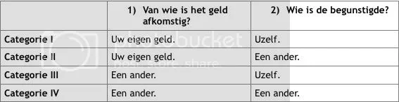 Bij de eerste categorie geeft u uw eigen geld uit aan uzelf. U heeft hierdoor een sterke prikkel om kosten te besparen, efficiënt te zijn en zoveel mogelijk waar voor uw geld te krijgen. U geeft immers uw eigen geld uit.