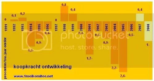 Voor ons land betekende het bij de invoering van de euro niet-revalueren van de Nederlandse gulden in de periode vanaf 1999 t/m 2006 - in welke periode de lonen met maar liefst met 23,2 procent zijn gestegen (bron: OESO) - al met al een proces van interne revaluatie met een onherstelbare, zeer forse en structurele aantasting van onze koopkracht (minus 12%) en welvaart (minus 10% bbp) ten opzichte van het scenario dat de gulden aan de vooravond van de invoering van de euro wel met 13% gerevalueerd zou zijn. .De in Nederland sinds het jaar 2000 als paddestoelen uit de grond geschoten voedselbanken zijn daarvoor een veeg teken aan de wand.