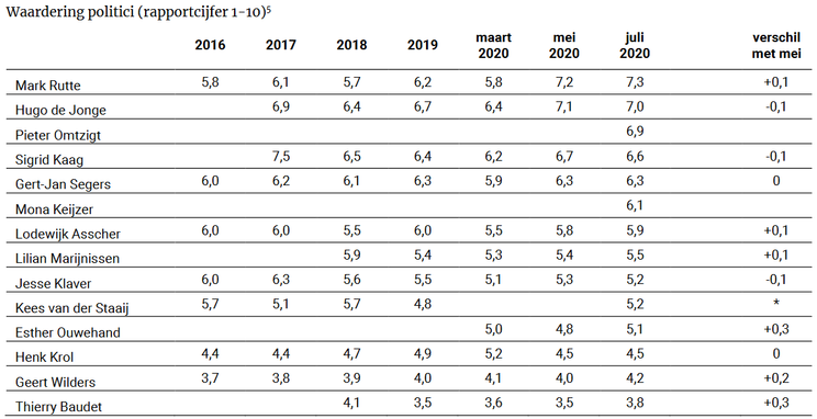 Interessant is ook de lijst met rapportcijfers voor Nederlandse politici: