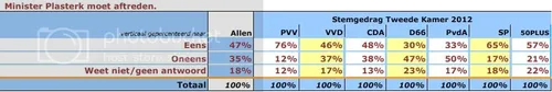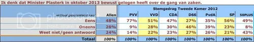 Voor een minister is dit desastreus. Slechts de helft van oud PvdA-kiezers staat nog achter hem. De rest vindt ofwel dat hij weg moet, of heeft geen mening. Dat móét Plasterk angst aanjagen. Als de linkse kiezer niet meer achter hem staat kan zijn partij hem namelijk zonder problemen laten vallen. Aangezien de gedoodpartijen dat weleens konden eisen - in ruil voor hun steun - doet Plasterk er verstandig aan zich er alvast op in te stellen dat dinsdag een buitengewoon moeilijke dag voor hem wordt.