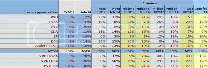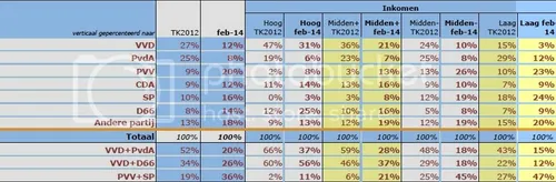 Daar komt nog eens bij dat, beide partijen vrijwel geen kiezers meer overhouden met een laag inkomen... en dat de VVD zelfs een flink deel van haar natuurlijke achterban - mensen met een hoog inkomen - heeft moeten laten gaan.