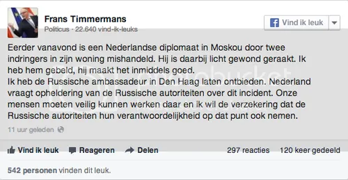Na dit nieuws bekend werd verwachtte ik een reactie van minister Timmermans. En dan bedoel ik: via officiële wegen, aan het adres van het Kremlin.