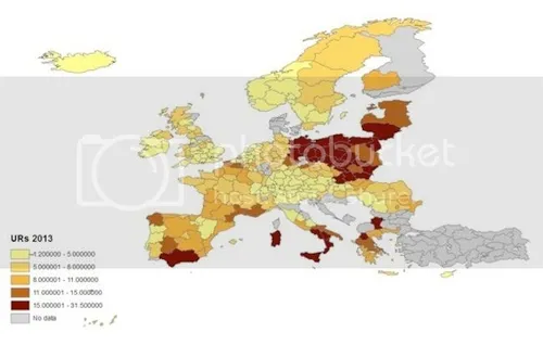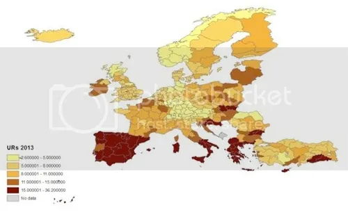 Een heel ander beeld, ziet u wel? De werkloosheid in voorheen genoemde zwakke delen van de eurzonone is sterk afgenomen. Zelfs in Zuid-Spanje, waar veel (nutteloze) infra-structuur is aangelegd met Europees geld. We kennen allemaal de beelden van de lege autowegen in het land. Helemaal brandschoon zijn genoemde regio's niet, maar de situatie is sterk verbeterd.