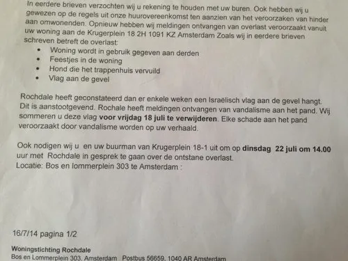 En daarmee zijn we er nog niet. De brief aan de pro-Israëlische bewoonster is namelijk ook online gezet. Naast het feit dat het ontzettend slecht geschreven is valt vooral op dat de woonstichting keihard stelling neemt tegen Israël: