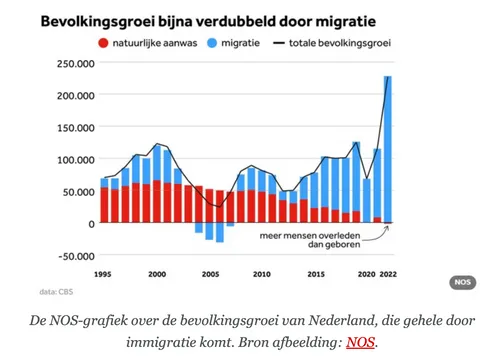 bevolkingsgroei komt dan ook geheel van migratie, zo moet zelfs de NOS erkennen.