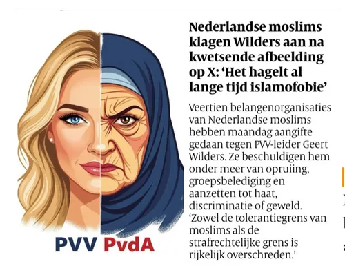 De Volkskrant gaat daarin mee. De kop boven een artikeltje luidt: “In de strijd tegen racisme helpt het zeker niet als Wilders’ concurrenten zijn agenda simpelweg overnemen”. Kennelijk is de strijd tegen Wilders voor De Volkskrant een “strijd tegen racisme”. Maar dat is natuurlijk onzin. Waarom? Omdat islam geen ras is. En wat Wilders doet in het tekeningetje is het kritiseren van de islam. Of eigenlijk: van een bepaalde praktijk die met de islam wordt verbonden, namelijk het dragen van een hoofddoek.