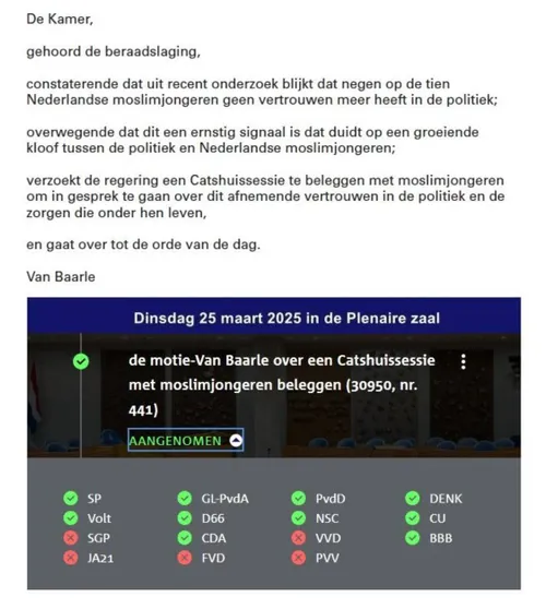 Deze stemming laat haarscherp zien waar CDA en BBB écht staan. Ze presenteren zich graag als partijen die ‘opkomen voor Nederland’ en ‘kritisch staan tegenover migratieproblemen’. Maar als puntje bij paaltje komt, stemmen ze gewoon mee met DENK en GroenLinks-PvdA om speciale privileges te organiseren voor één specifieke groep: moslimjongeren.