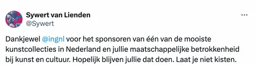 deze tweet van Sywert van Lienden, bijvoorbeeld: