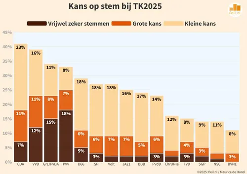 Maar de VVD sluit de grootste partij uit. En dus is een werkbare meerderheid onmogelijk. De boodschap van deze verkiezingen wordt daarmee niet: “wie wordt de grootste?”, maar: “wie durft nog met rechts te regeren?” De VVD niet. NSC niet. Het CDA twijfelt. Alleen PVV, FVD en SGP staan daar wél voor open.