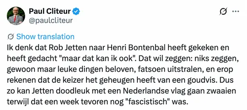 Nederlandse vlag gaan zwaaien terwijl dat een week tevoren nog ‘fascistisch’ was,”