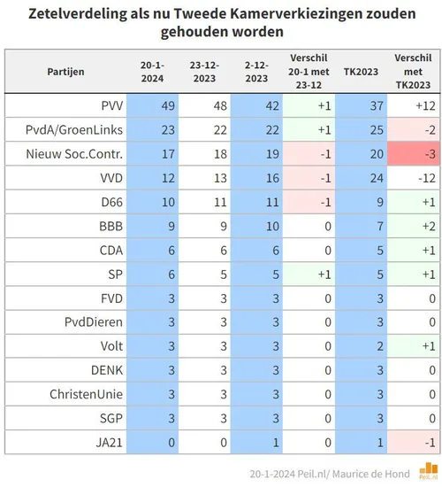 wederom stabiel, waarbij de afsplitsers van JA21 in de nieuwste peilingen