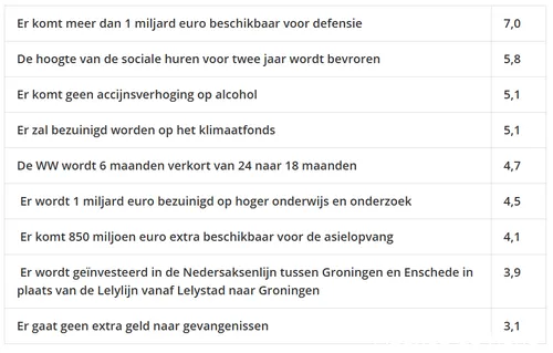 klimaatfonds? Ook zo'n beetje neutraal (5,1). Minder WW? Dat valt minder goed,