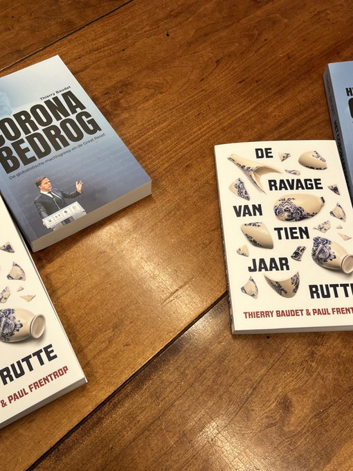 FVD-leider Thierry Baudet heeft dan ook de gek met dit soort nutteloze gesprekken. Voor het gesprek publiceerde hij een foto van zijn eigen boeken met de tekst: "Boeken liggen klaar voor het gesprek zo." Het gaat dan om "De ravage van tien jaar Rutte" én "Het coronabedrog."